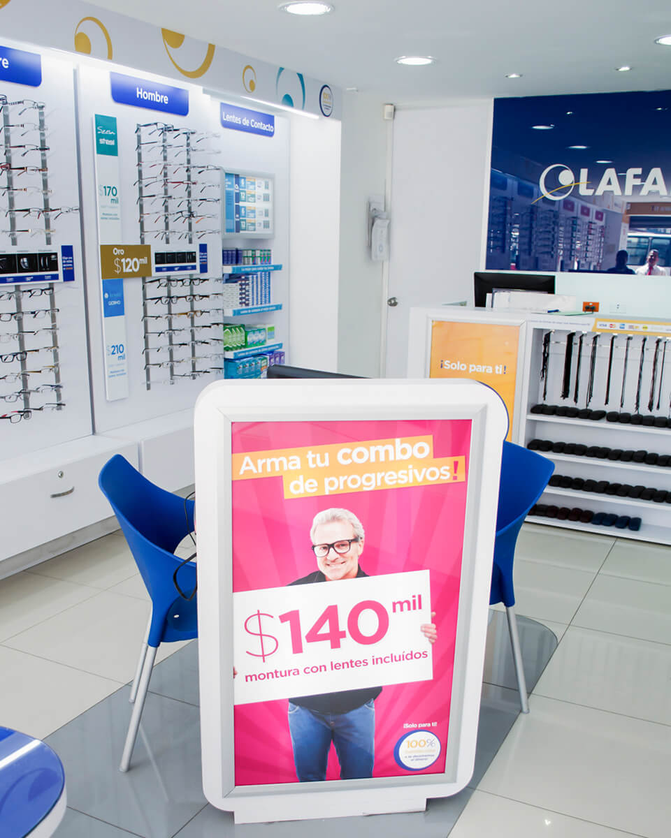Diseño de muebles y vitrinas de almacenamiento que permiten una interacción ideal. Pisos en porcelanato, que por ser la última generación en cerámicas esmaltadas, incorpora sofisticación y modernidad al ambiente; mobiliario y sillas en cuero que complementan el estilo. Un dinámico y enérgico material P.O.P. que destacan todo el portafolio de productos y la comunicación de la marca.