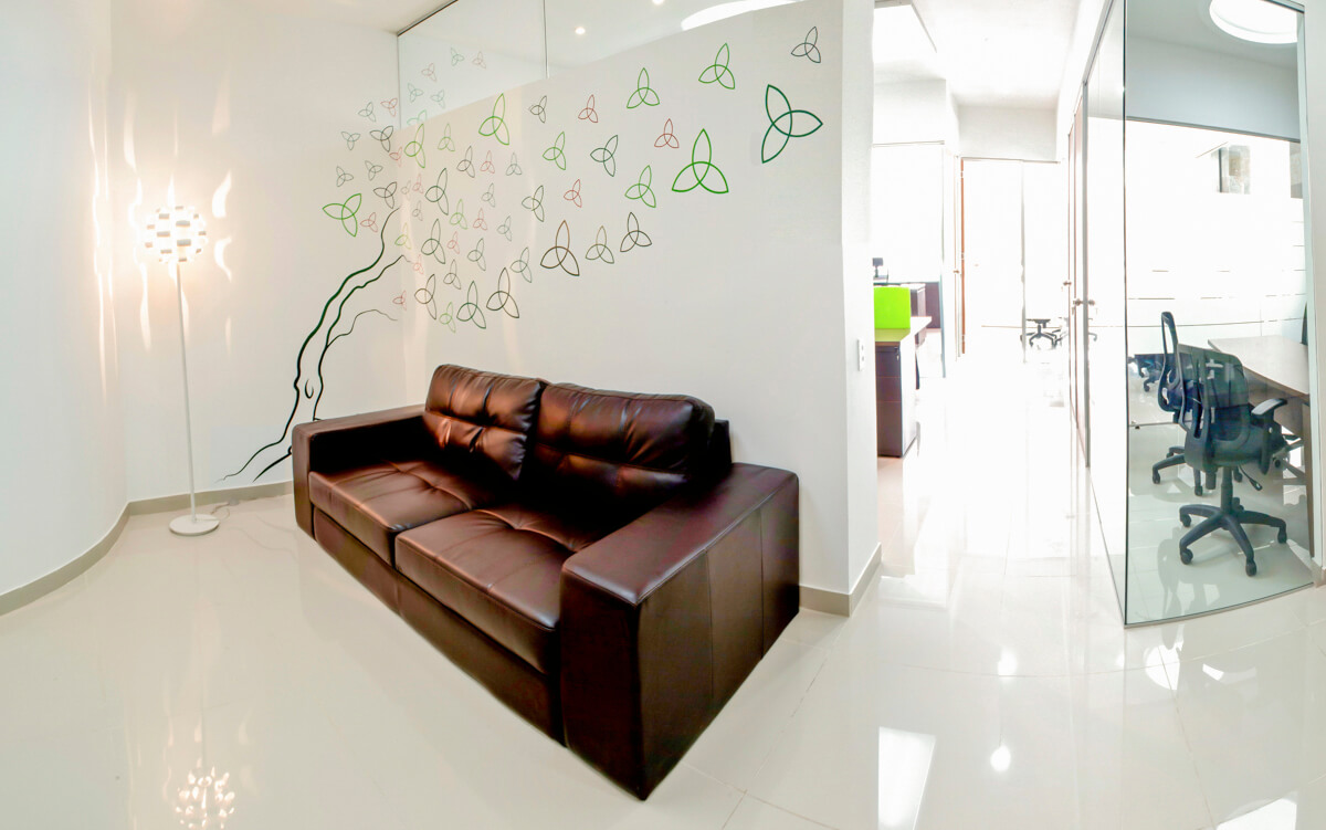 Los detalles en vidrio y la iluminación permiten dan la sensación de un entorno cálido y seguro, los tonos tierra y la decoración aportan el toque natural de elegancia y conocimiento al lugar; mobiliario con acabados en chapilla natural realzan las formas del diseño.
