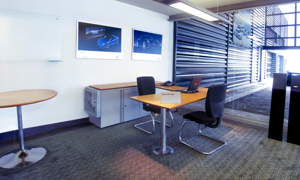 Acero, un elemento que enriquece la intención de proyectar un producto de alta gama; chapillas de madera natural, pensadas en revestir el espacio con una distinción prominente, además de melamínicos, vidrio templado con herrajes en acero y enchapes con alucuom, propios del estilo Porsche.