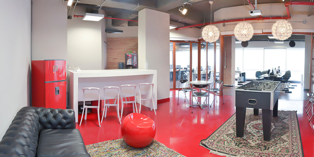 Una contundente paleta cálida, que además de estar alineada con los colores corporativos, permitió junto a materiales inspirados en la naturaleza, el tono y carácter enérgico, amable y divertido que se planeó trazar en los espacios.